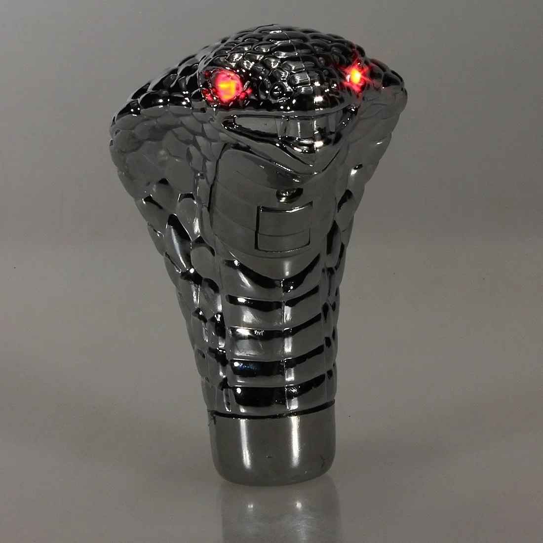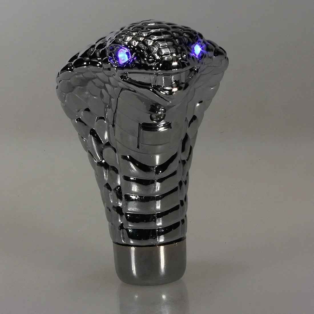 Pourquoi se contenter du banal quand l'exceptionnel existe ? Ce serpent au capuchon déployé attire tous les regards. La sculpture détaillée capture chaque écaille, chaque courbe menaçante du cobra. La finition chromée premium reflÚte la lumiÚre comme un bijou. Mais le véritable coup de maßtre ? Ces yeux LED qui s'illuminent en rouge ou bleu selon votre choix. Dans l'obscurité, votre habitacle devient un cockpit futuriste.